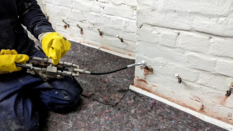Mit der Mauerwerksinjektion werden erdberührte undichte Bauteile nachträglich von innen nach außen hin abgedichtet.